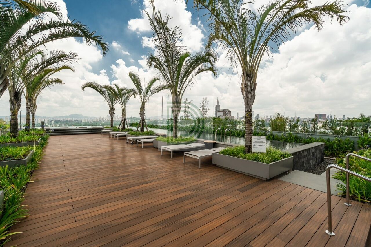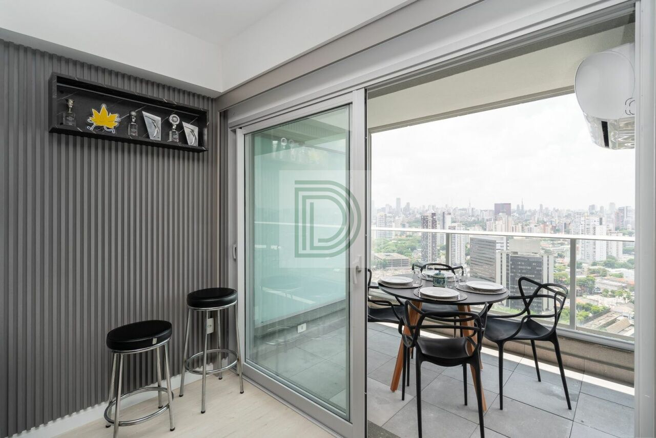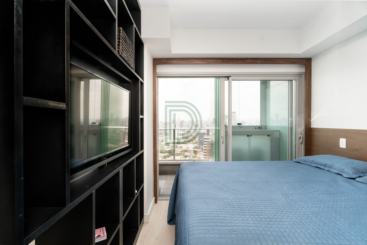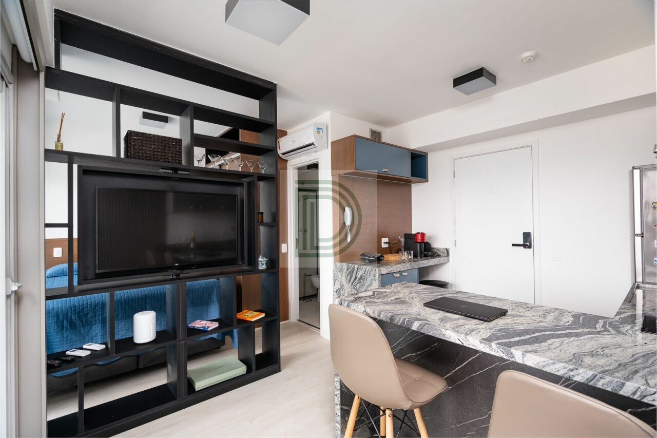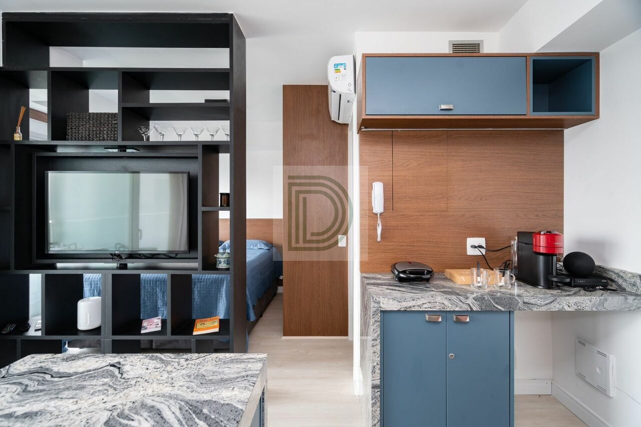 Studio novo, andar alto, mobiliado, conta com TV, geladeira, cooktop, 2 ares condicionados, dentre outros, varanda fechada com vidros duplos e porta anti-ruido, e com uma vista de tirar o folego.
