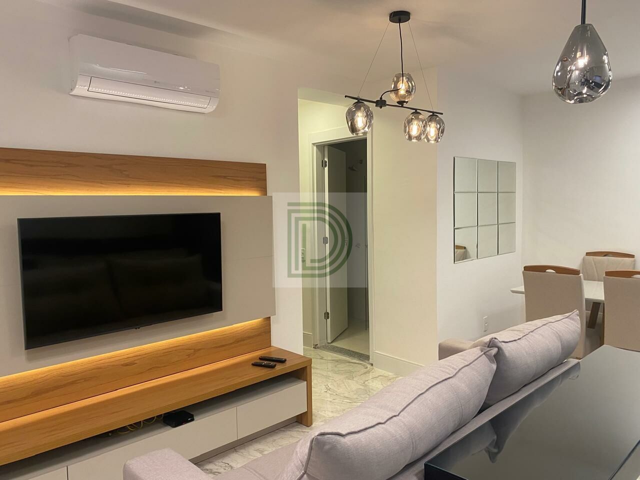 Sala para ambientes de TV e jantar