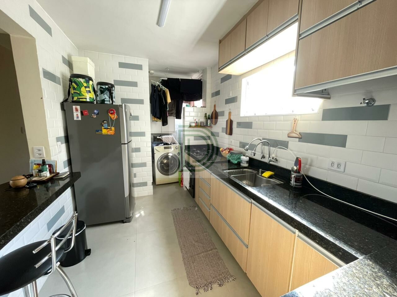 Lavanderia separada com divisória de vidro