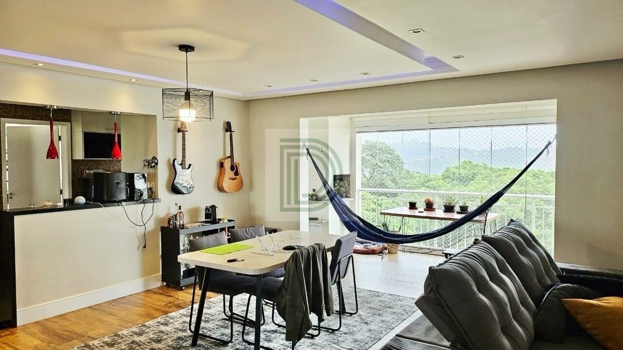 Sala ampliada para 2 ambientes integrada à varanda