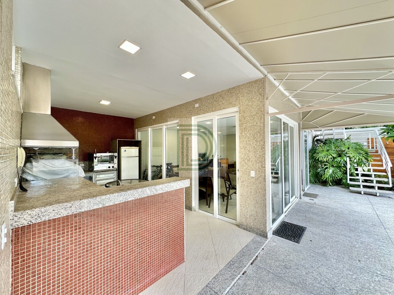 Paisagismo iluminado, redário e pergolado
