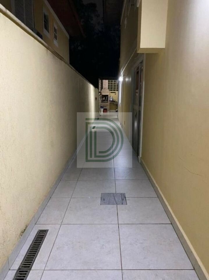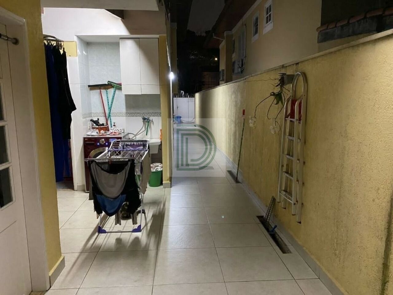 Quintal com churrasqueira e corredor lateral