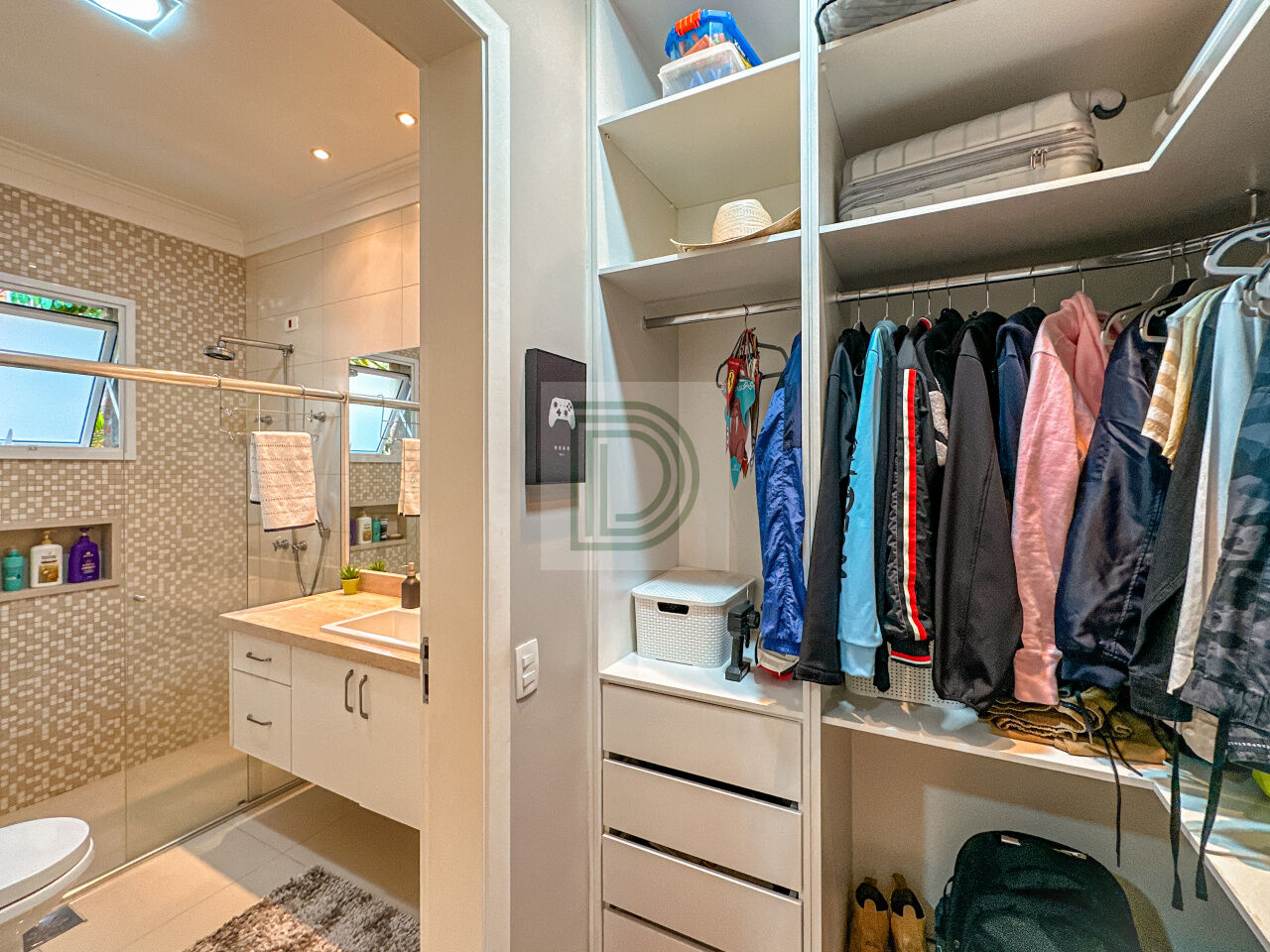 Casa repleta de armários planejados, persianas automatizadas, sistema de câmeras e cisterna de 20 mil litros para reaproveitamento de água da chuva.