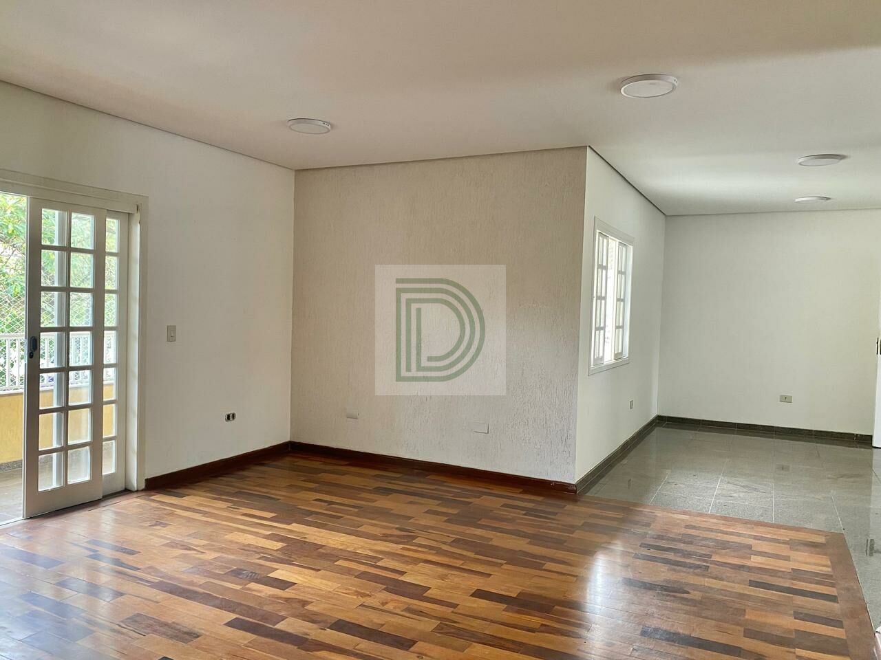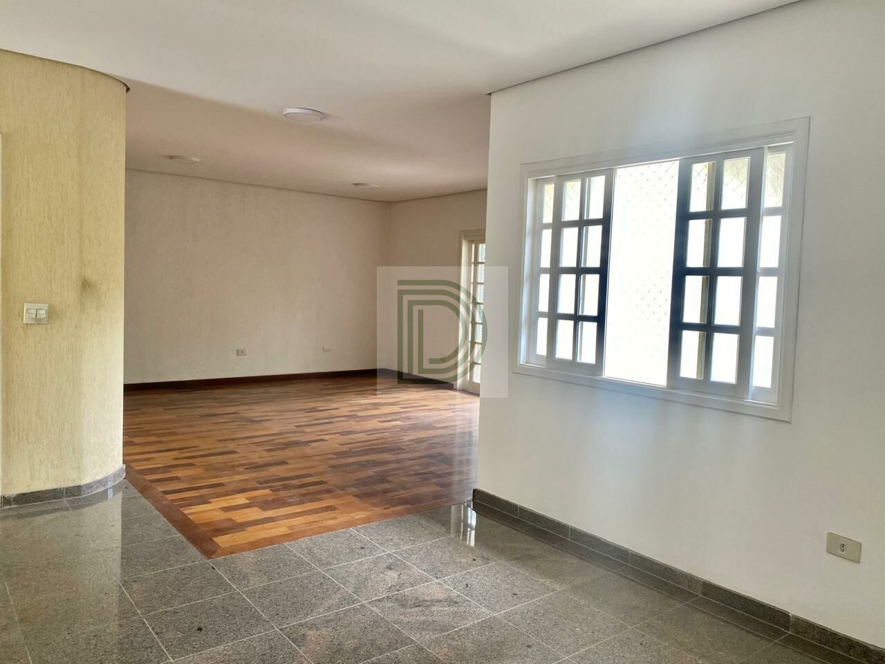 Sala grande para 3 ambientes com lareira