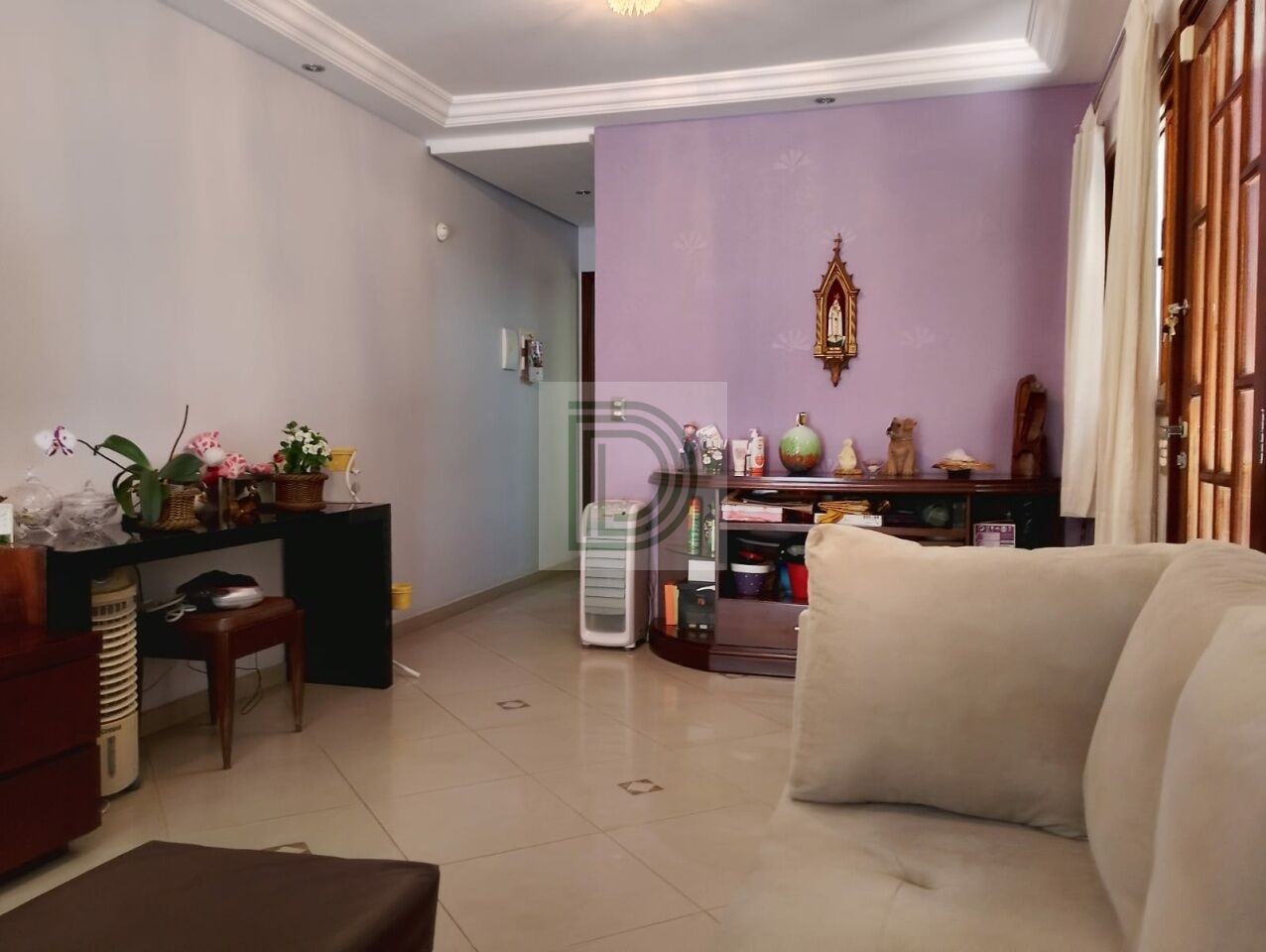 Sala ampla com piso em porcelanato