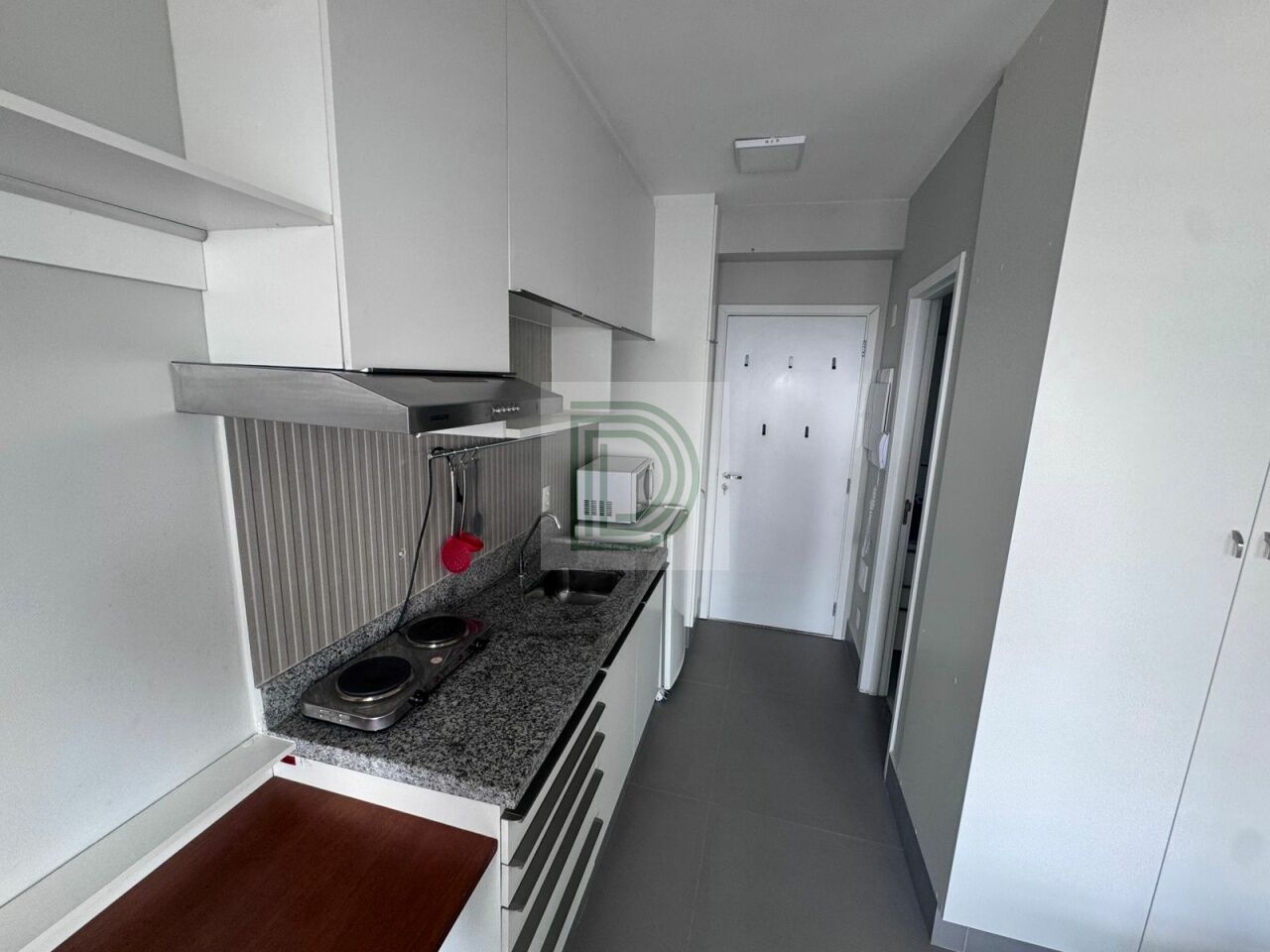O imóvel possui 25 m², já equipado com armários, piso instalado e box no banheiro, pronto para morar.