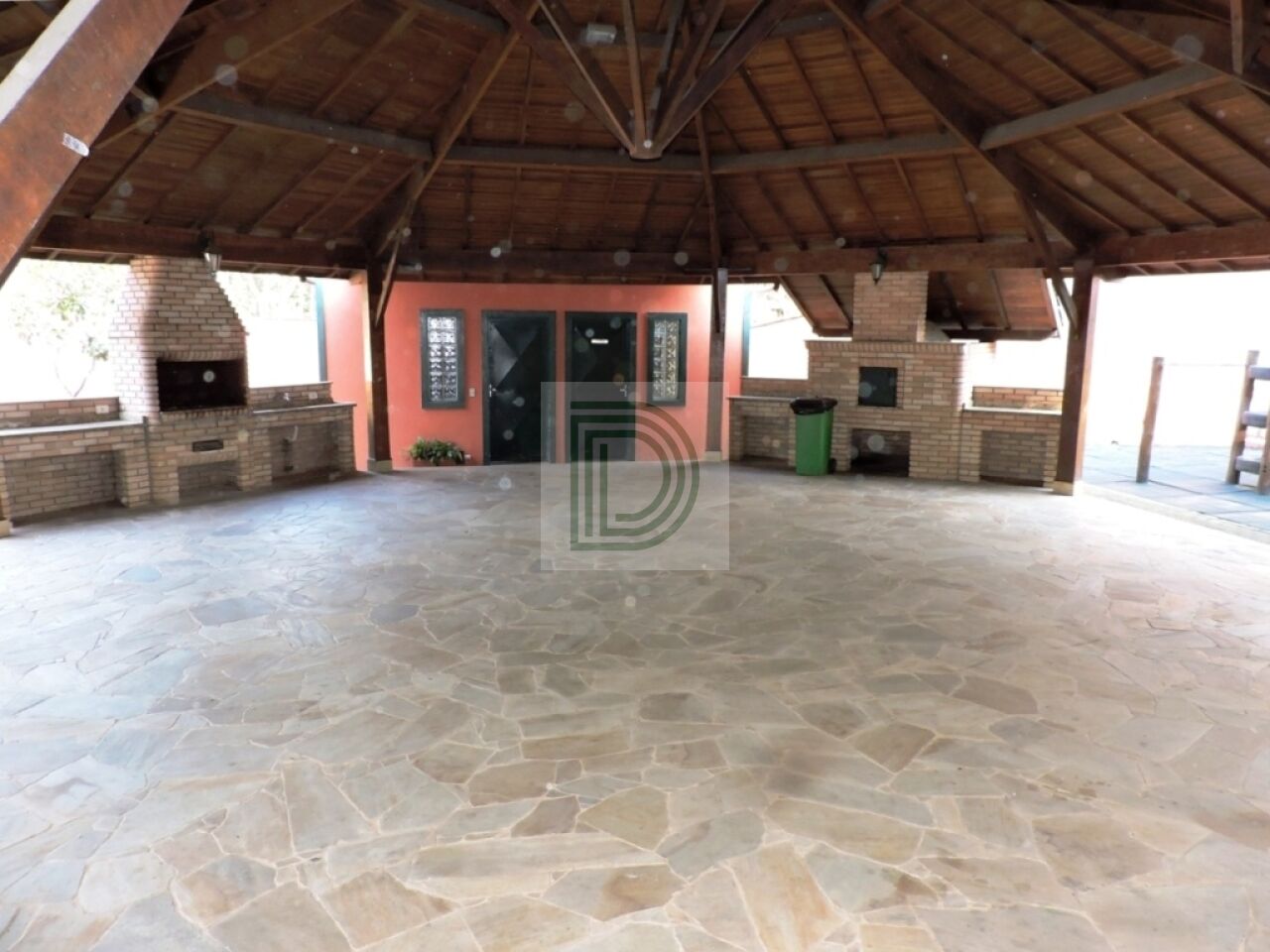 No centro do condomínio.
