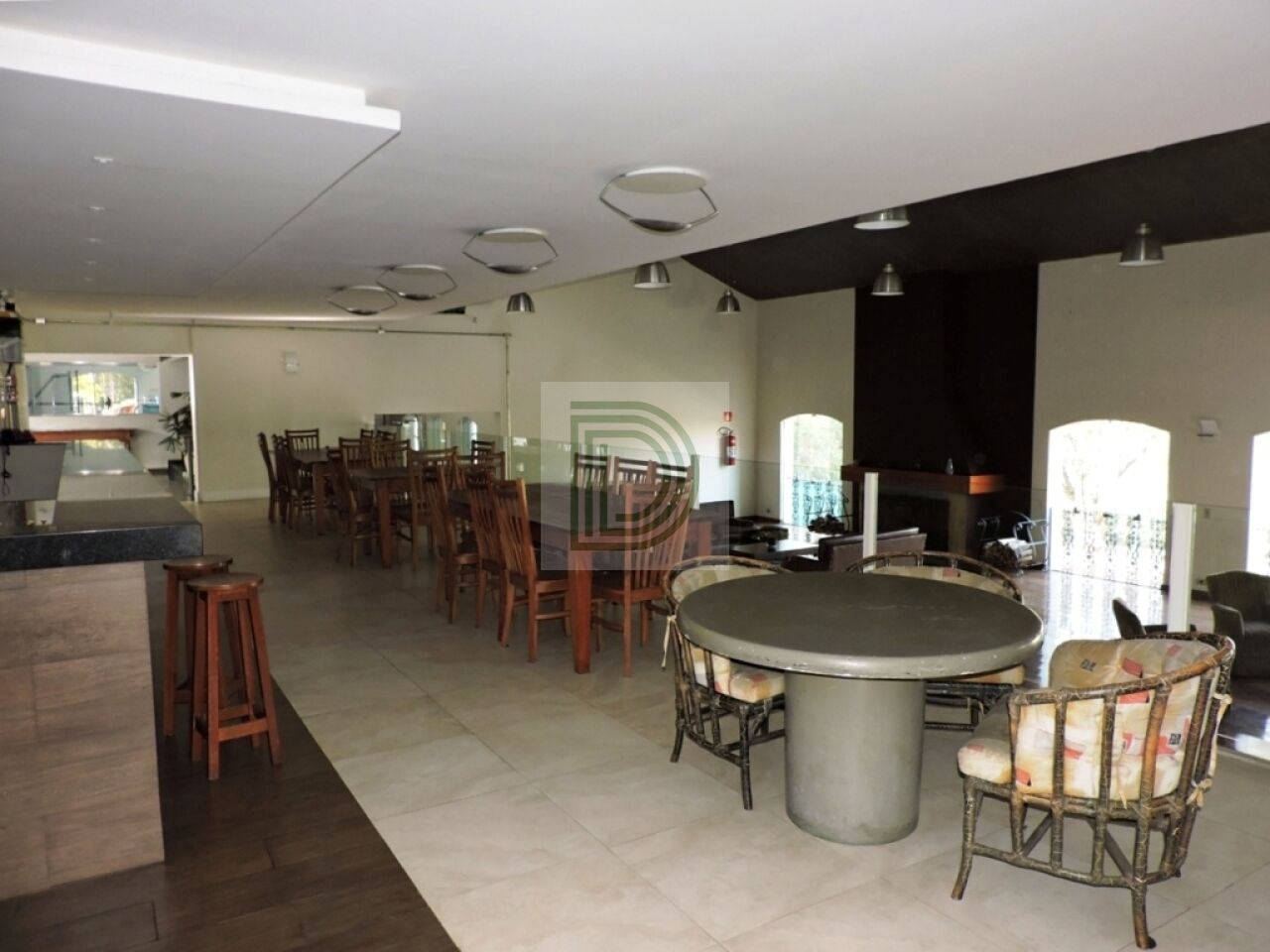 Sede social com salas de estar e lareira
